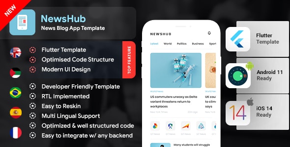 News & Blog Magazine Android + iOS App Template | Flutter 2 | Newshub